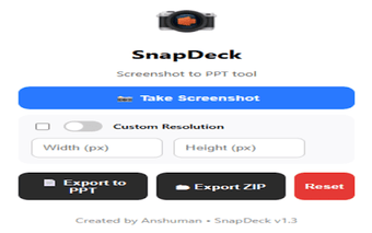 SnapDeck är en kraftfull Chrome-tillägg som underlättar skapandet av högkvalitativa skärmdumpar. Användare kan enkelt ta skärmdumpar med ett knapptryck och anpassa upplösningen för att passa sina behov. Denna funktion gör det enkelt för designers och utbildare att dokumentera och dela visuell information. SnapDeck erbjuder också möjligheten att exportera skärmdumpar direkt till PowerPoint-presentationer eller som ZIP-filer, vilket ökar flexibiliteten och användbarheten.